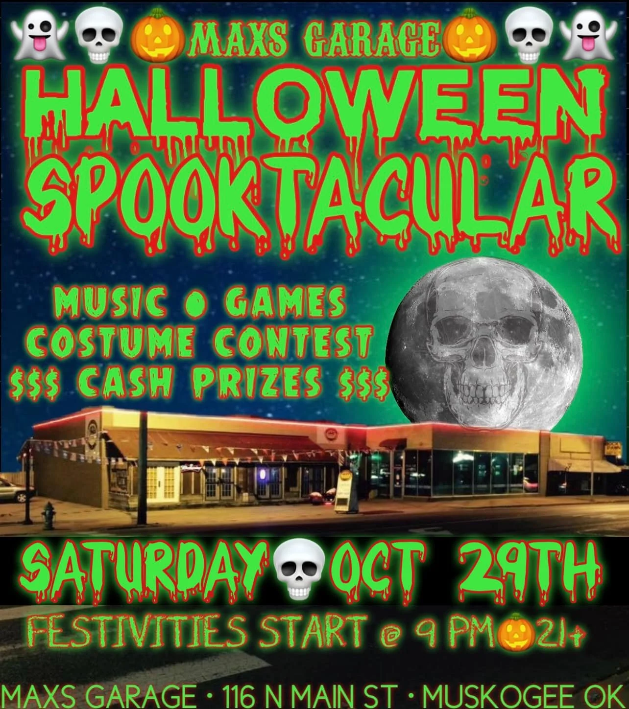 Max’s Garage Halloween Spooktacular is on Saturday, October, 29th at 9 p.m. for 21+